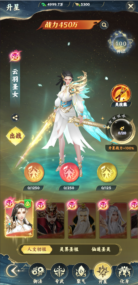 幻神消耗一定数量的碎片可以升星,升星后提升幻神的战斗力,幻神还可以通过吞服丹药,提升玩家战力。