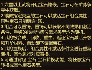 2. 镶嵌指定类型的宝石可以激活宝石组合属性,同种宝石只能镶嵌1颗。