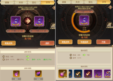1. 灵饰可以消耗强化材料或任意未佩戴的灵饰进行基础属性的强化。